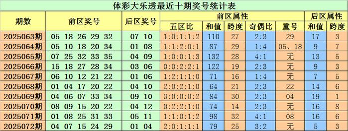 上期开奖:体彩大乐透第2025072期开奖号码为:04、07、15、24、29 01、04。前区五区比为2:0:1:1:1,和值为79,首尾间距为25,奇偶比为3:2,无重号。后区号码和值为5,跨度为3。
